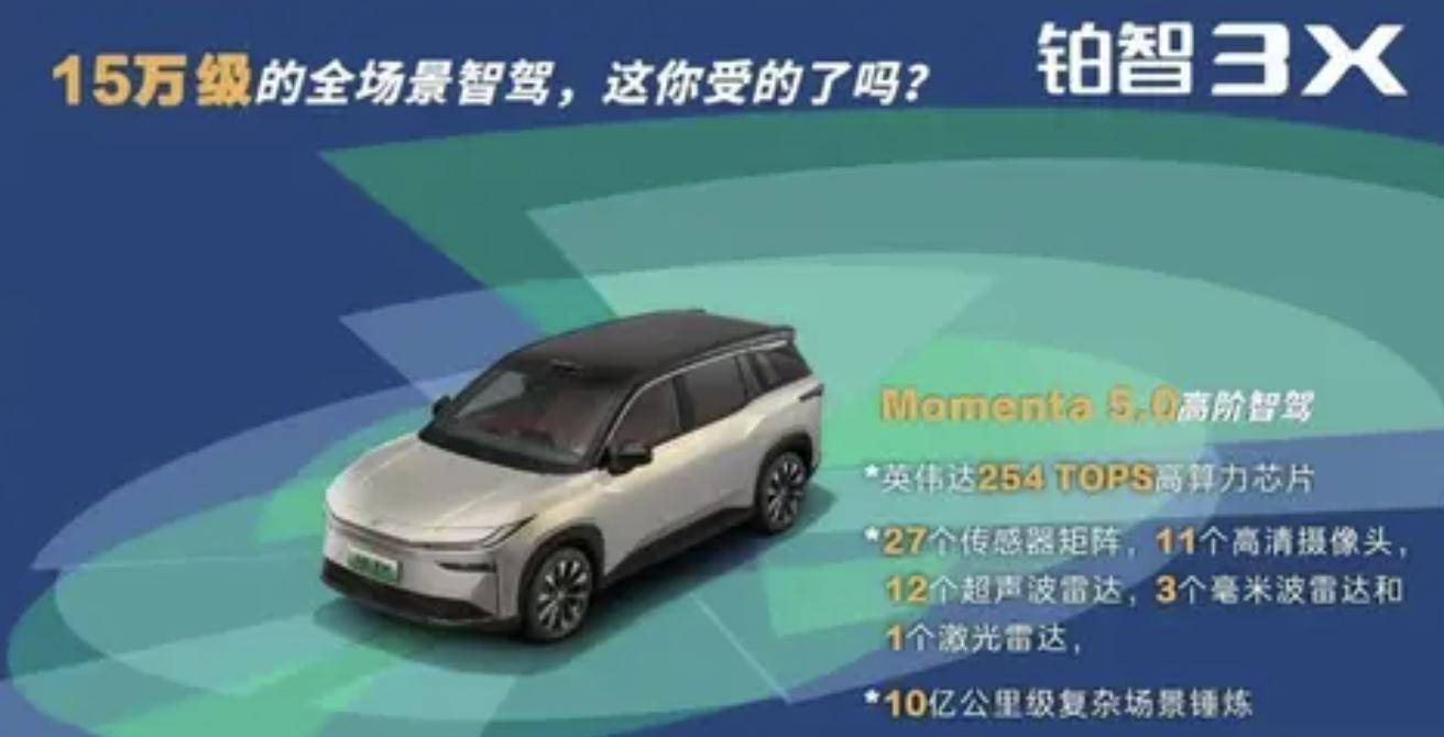 并且是搭载了Momenta 5.0高阶智驾系统,配备英伟达Orin-X芯片,算力达254TOPS,外加27个传感器。