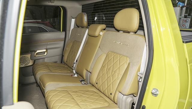 座椅使用了最新的菱形缝线纹理闪电策略,座椅靠背带有Frontier Pro字样,增加了档次感。后排有着不错的空间表现,带有三个头枕,靠背能够4/6比例折叠。